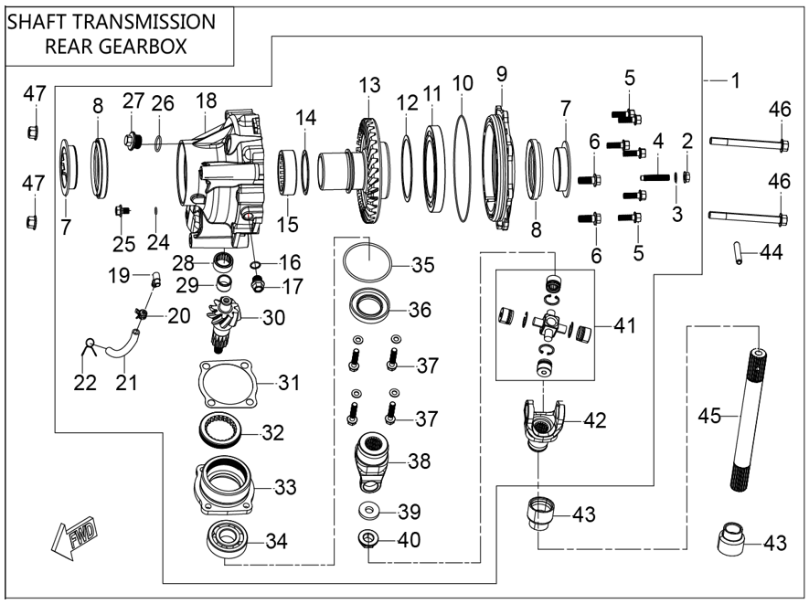 Zadní rozvodovka na XWolf 700i Long MUD