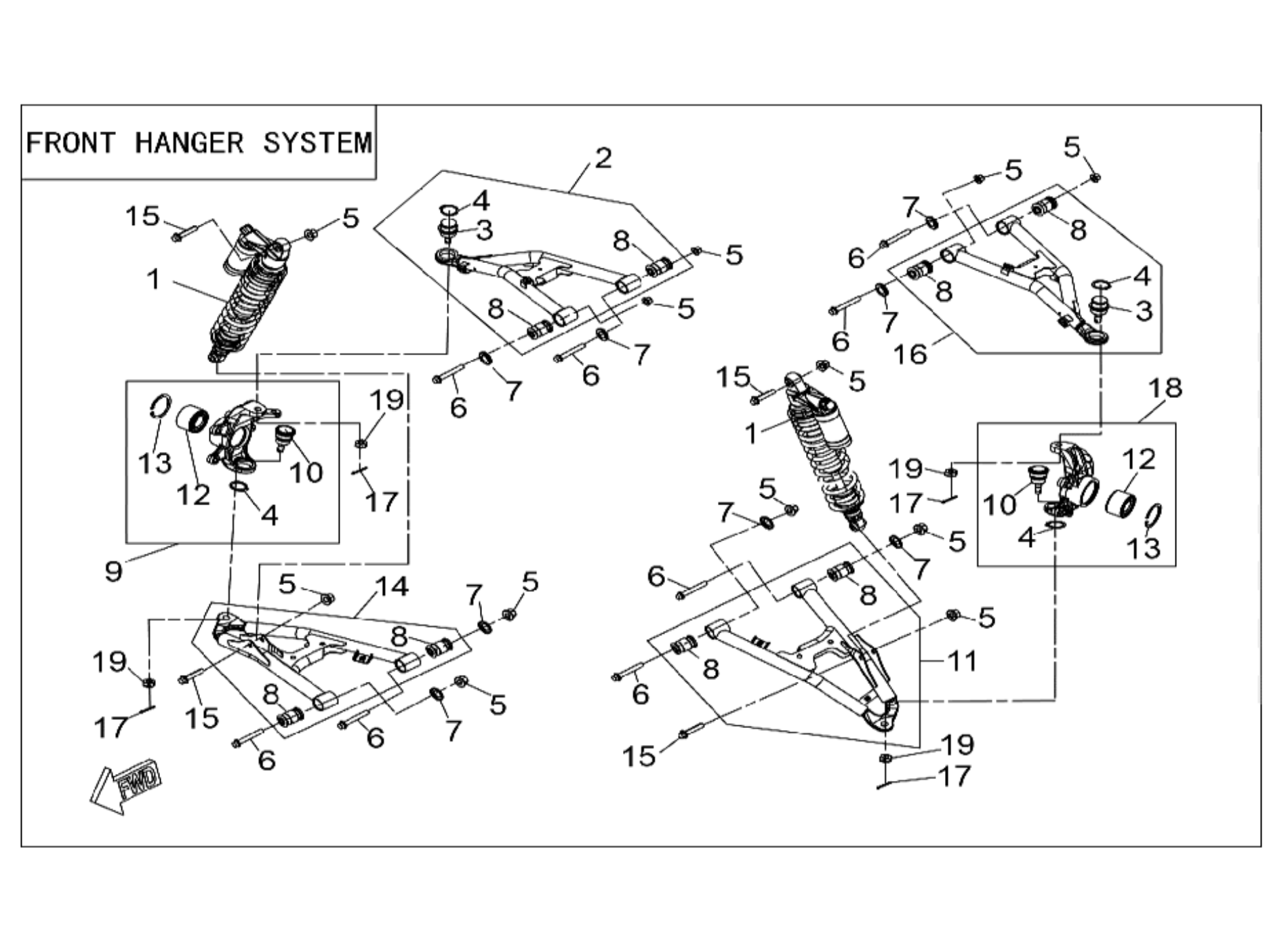 Systém předního zavěšení, tlumiče na XWolf 1000i Long MUD