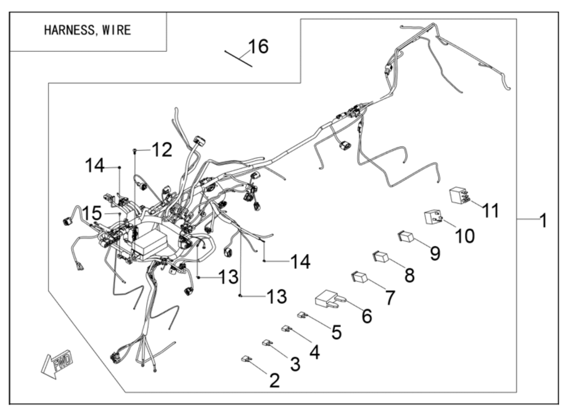 Kabelový svazek a elektrické součásti na XWolf 1000i Long
