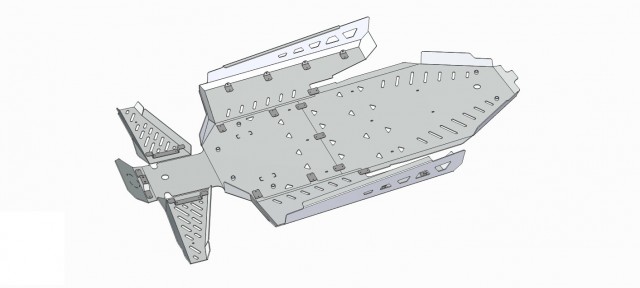 Kryt podvozku je vyrobenej z pevný slitiny hliníku a hořčíku A5754. Ten se potom řeže i tvaruje na CNC strojích. Boční a hodně ohnutý části se pak svařujou TIGem. Jedná se o přirozeně tvrdej materiál s výbornými vlastnostmi. Odolnost proti korozi (i v mořské vodě) je samozřejmostí.