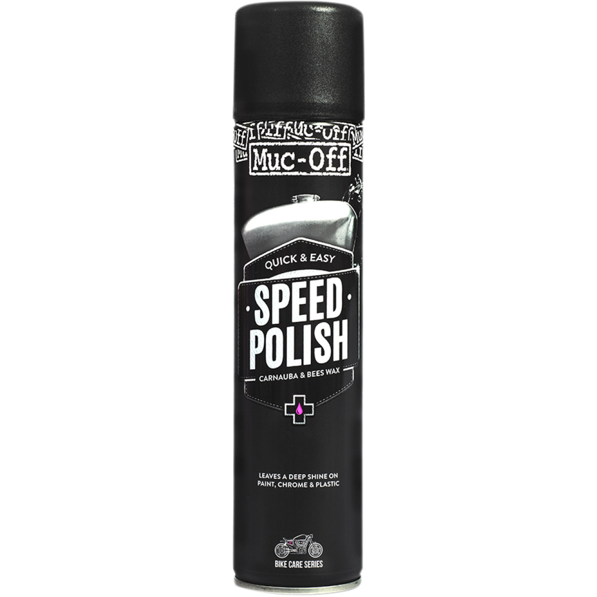 MUC-OFF SPEED POLISH obsahuje ryzí karnaubský vosk (nejtvrdší známý přírodní vosk) dodávající leštěnce potřebnou odolnost a včelí vosk, který dodává všem ošetřeným částem potřebný hluboký lesk. Díky svému složení tak rychle a jednoduše vytváří odolnou bariéru, která účinně chrání kovové, plastové, lakované nebo chromové části zejména proti vodě a vlhkosti. Po aplikaci nezanechává žádné nežádoucí bílé šmouhy.